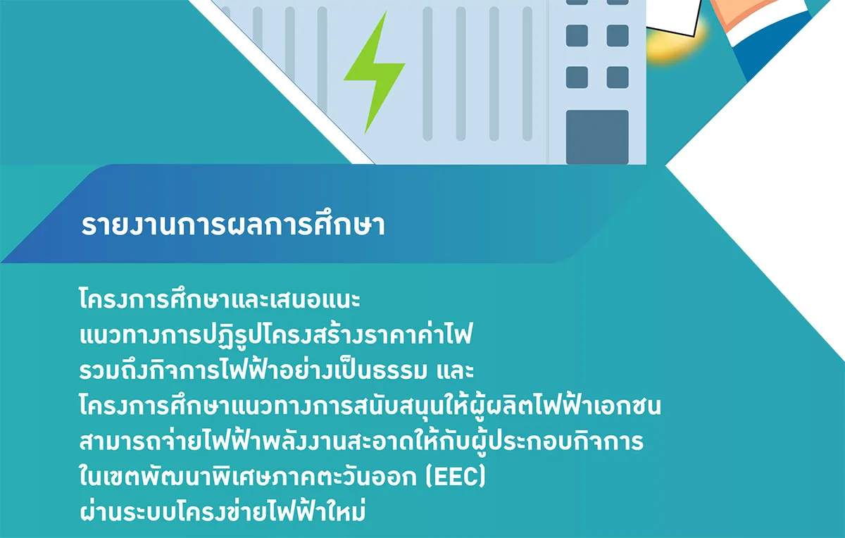 การศึกษาโครงการ “แนวทางการสนับสนุนให้ผู้ผลิตไฟฟ้าเอกชนสามารถจ่ายไฟฟ้าพลังงานสะอาดให้กับผู้ประกอบกิจการในเขตพัฒนาพิเศษภาคตะวันออก (EEC) ผ่านระบบโครงข่ายไฟฟ้าใหม่”